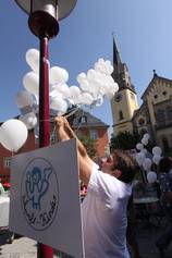 ZUKI Luftballons steigen vom Turm der Stadtkirche St. Andreas in den Himmel
